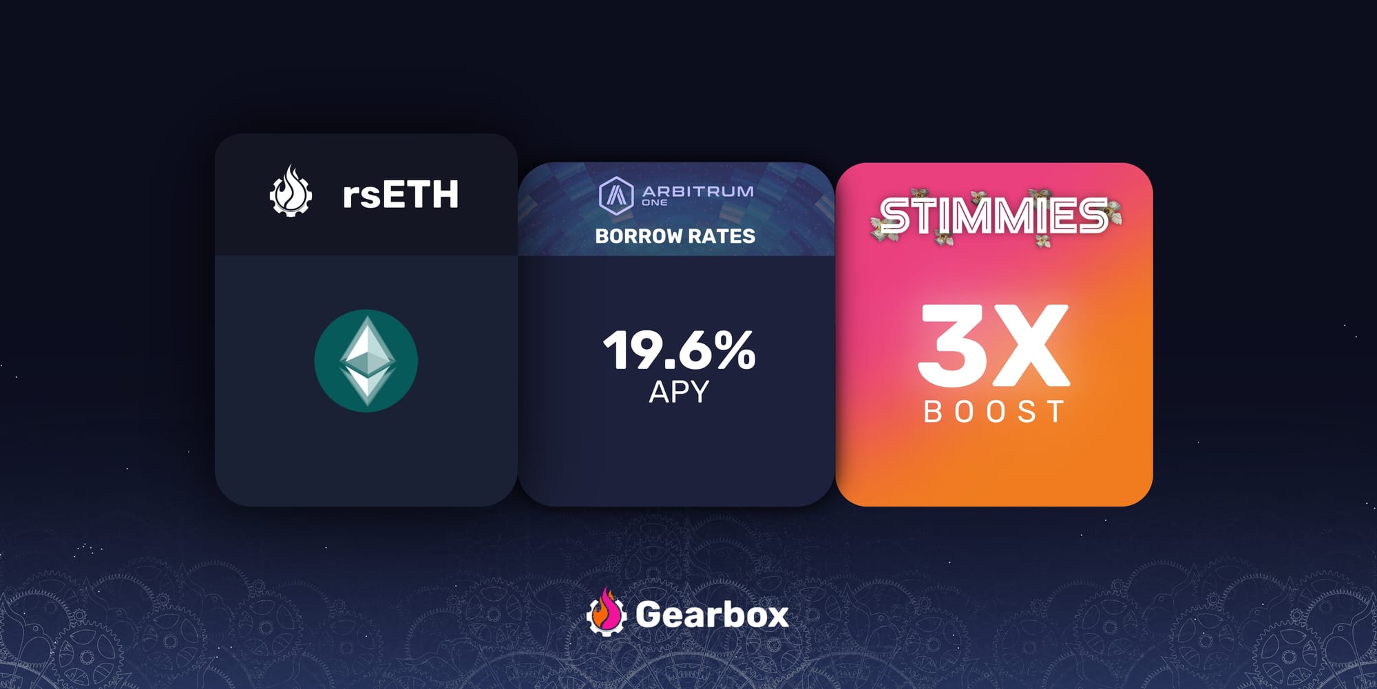 3X STIMMIES: STIMMIES is a user reward campaign, funded by an Arbitrum LTIPP grant. Users leveraging up STIMMIES will receive 3X STIMMIES for the first two weeks. STIMMIES are periodically (2-3 weeks) redeemed for GEAR and ARB tokens. You can find the details about STIMMIES below.