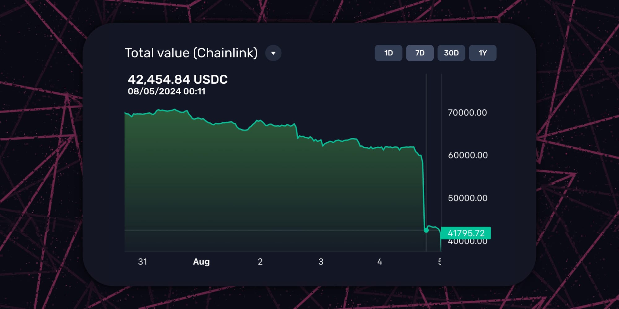 The effectiveness of fundamental oracles can be observed in the chart below. The green line denotes the Fundamental Oracle or reserve price, and the red line denotes the market oracle. While market Oracles remain volatile, fundamental Oracles completely muffle the volatility and make leverage friendlier.