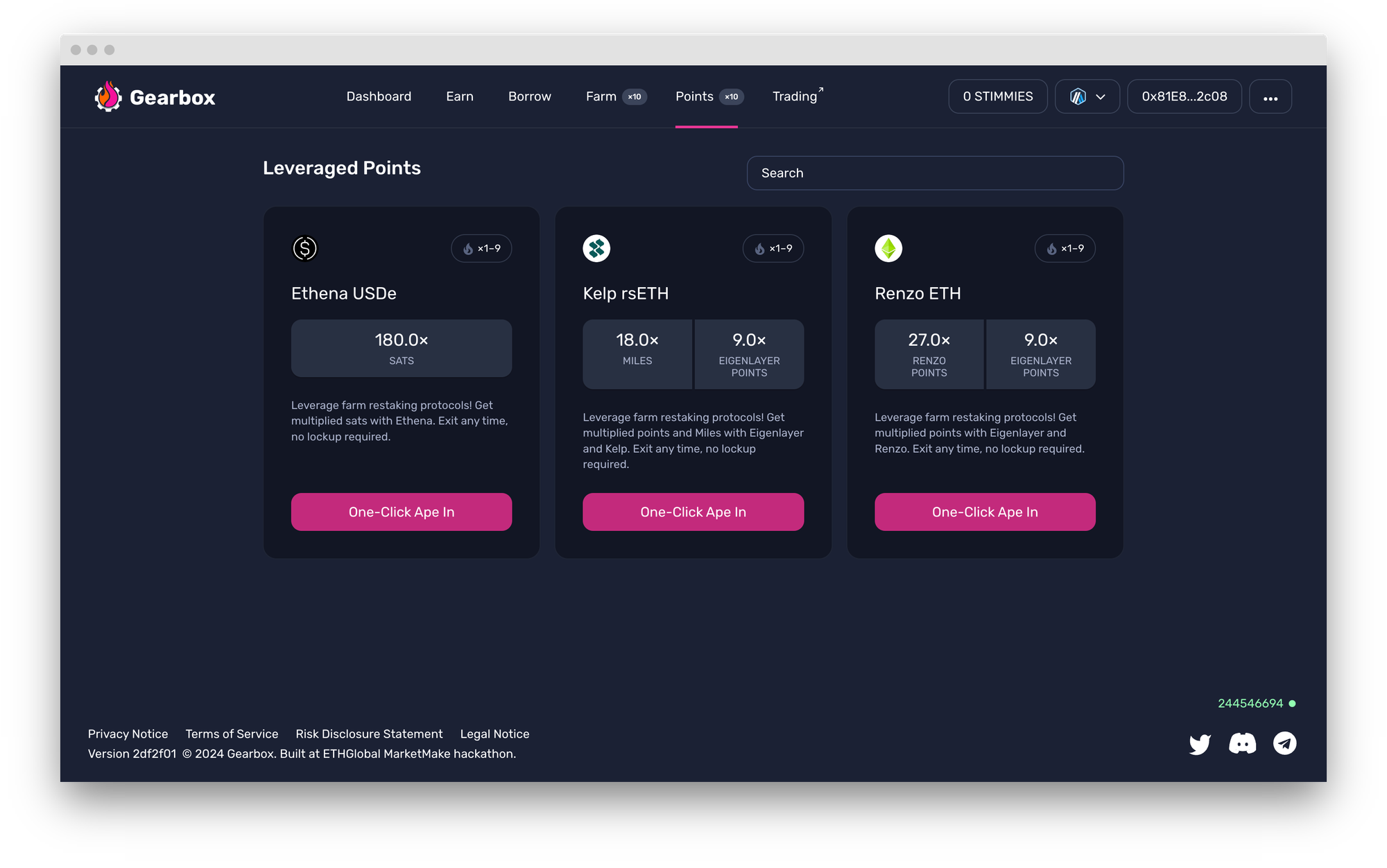 3X Miles: Kelp DAO has extended a 3X boost for Gearbox users, enabling users to earn up to 6 months worth of Miles every week. Alongside Miles, users will also earn leveraged Eigenlayer Points.