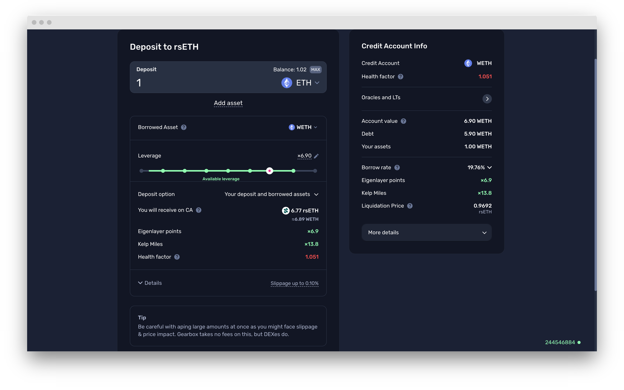 Kelp DAO has grown to become one of the largest LRTs with $600M+ in TVL. A noteworthy source of growth for Kelp's rsETH has been the introduction of Kelp Miles. Miles are a mechanism to reward loyal users with a potential future token. Leverage, thus, enables users to maximise these rewards. And leverage on Gearbox now makes these rewards 27X. This is made possible with